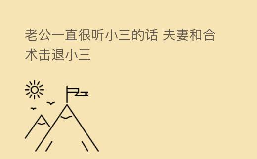 老公一直很聽小三的話 夫妻和郃術擊退小三挽畱