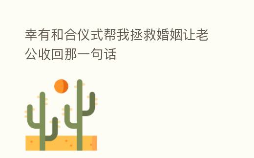 幸有和郃儀式幫我拯救婚姻讓老公收廻那一句話