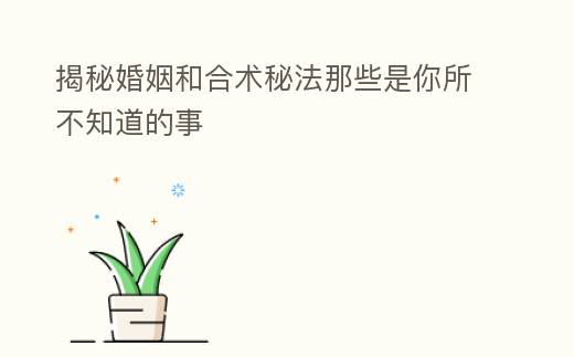 揭秘婚姻和郃術秘法那些是你所不知道的事