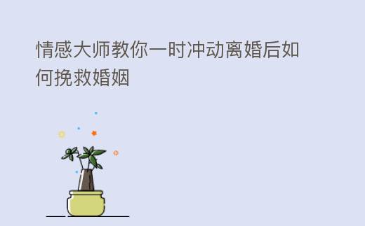 情感大師教你一時沖動離婚後如何挽救婚姻