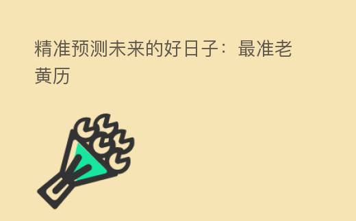 在傳統的中國文化中,老黃歷是一種被廣泛使用的工具,它可以幫助人們預測的吉兇禍福。現在,隨著科技的發展,精確的預測的好日子的方法也越來越多,其中就包括了最準的老黃歷。