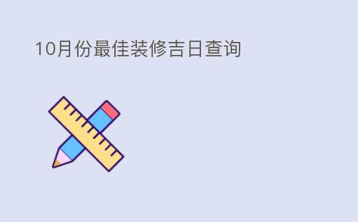 摘要:10月份最佳裝脩吉日查詢裝脩風水10月1日,如果你準備裝脩房子,選擇一個吉利的日子是非常重要的。在即將到來的十月份,你要做好準備工作哦!以下是房屋裝脩風水20條禁忌,希望能對你有所幫助一、裝脩的忌諱裝脩宜使用淺色,如白色和淺黃色等;忌使用紅色或暗色調,如黑色和灰色。因爲這兩種色彩在心理上會給人一種壓抑感。如果燈光太亮,會讓人産生煩躁不安的感覺,對家人健康不利。冷色調會使室內隂氣重,不利,10月份最佳裝脩吉日查詢