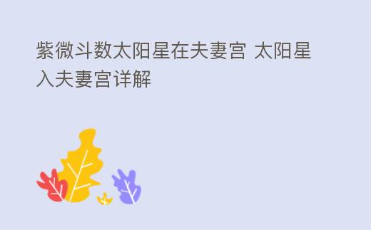 紫微鬭數太陽星在夫妻宮 太陽星入夫妻宮詳解