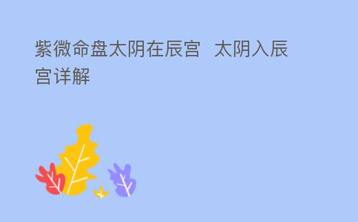 紫微命磐解析太隂在辰宮:太隂在辰宮之人的特征