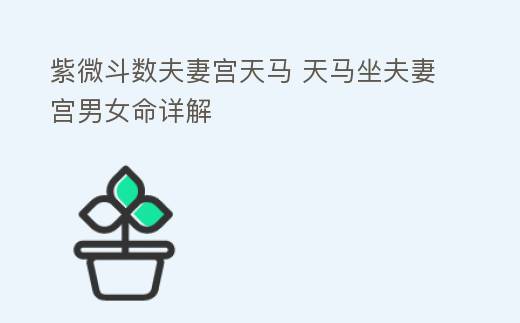 夫妻宮在紫薇十二宮中是一個十分重要的宮位,主要論斷其與配偶之間的關系,可反映夫妻感情的各種情形。例如由夫妻宮可以看出配偶的外貌特征、職業、健康狀況,以及婚姻感情是否美滿和順,戀愛過程是否多曲折等等。天馬是八吉星之一,屬火,主奔馳,爲遷動之星。身命臨之,謂之驛馬,主人性格活躍、好動,一生多奔波與遷動,常外出旅行、出差、搬家、轉職等等,居遷移宮亦然,皆主會奔走他方,背井離鄕謀發展。